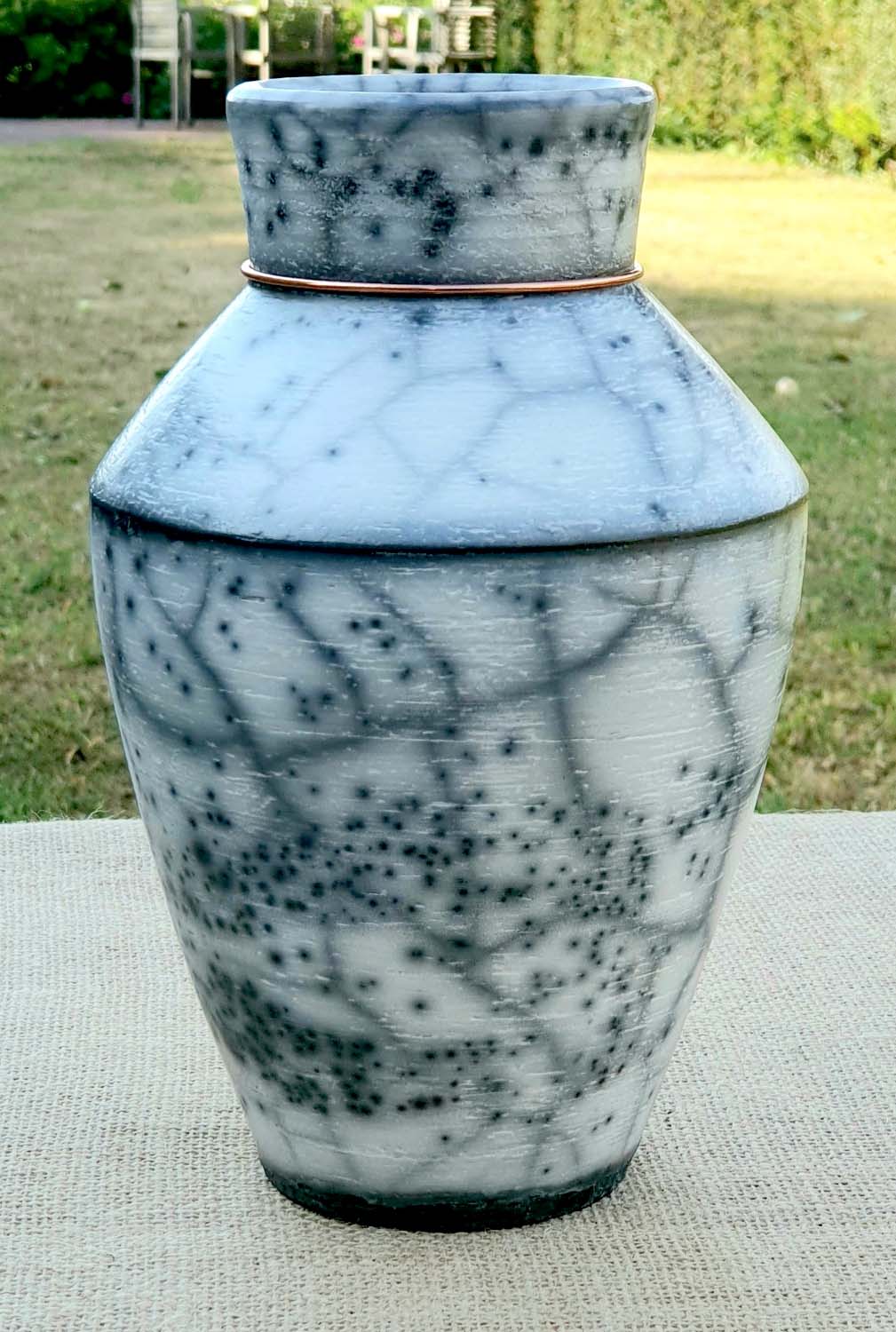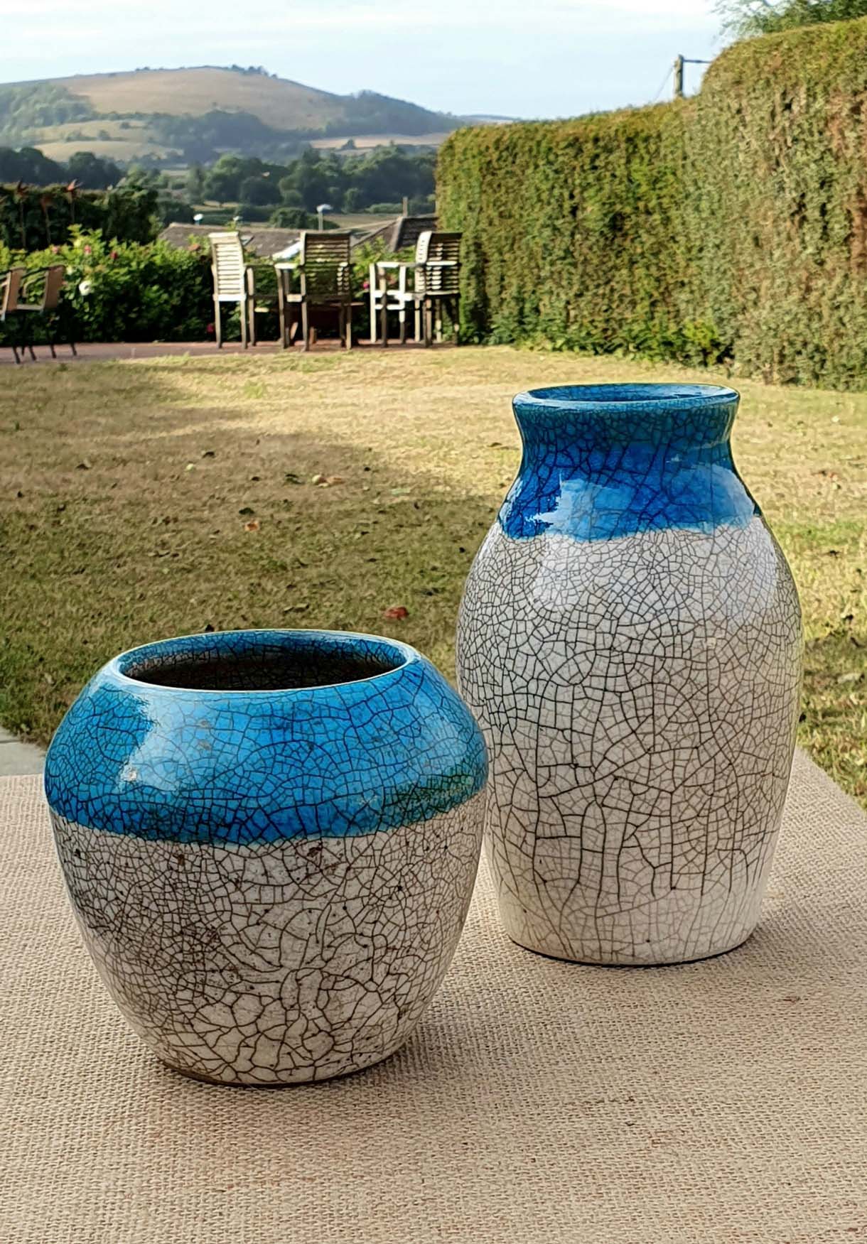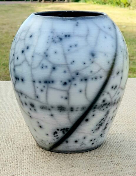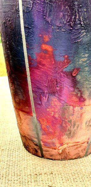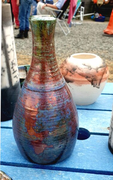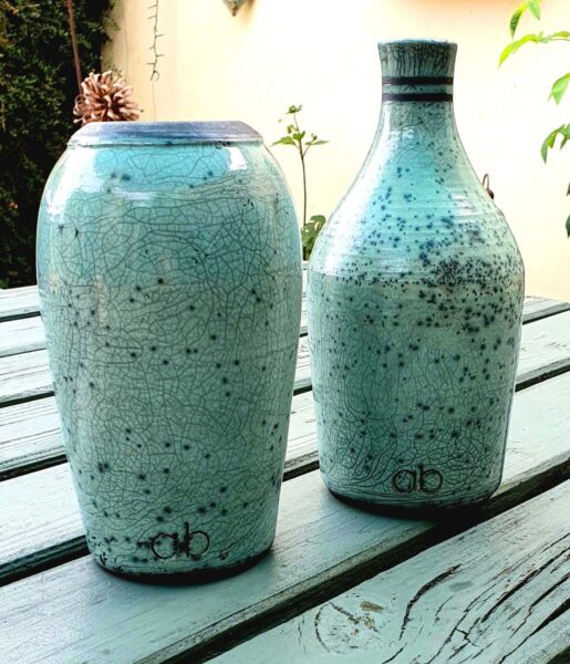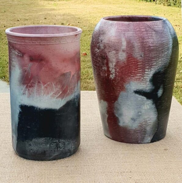Clay forms include: ‘high-fired’ red and white decorated earthenware, Raku, slip cast vases and fired decals.