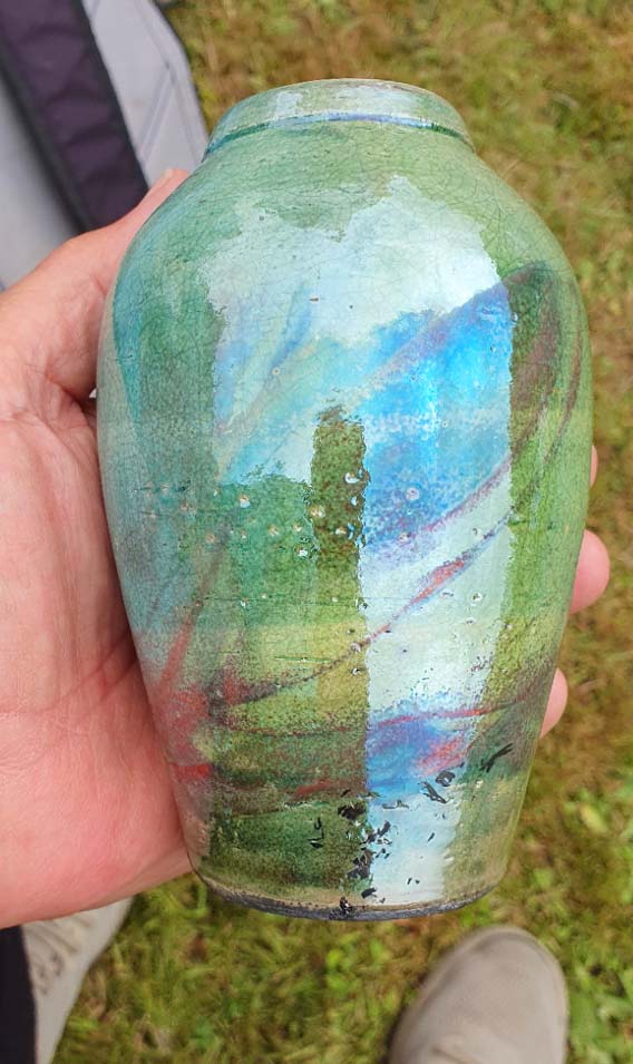 In terms of constructed work, photography is used extensively – some images finding their way into frames or ‘windows’. Others are manipulated and printed as ceramic transfers. These are then ‘fired’ onto the external surfaces of ceramic forms.
