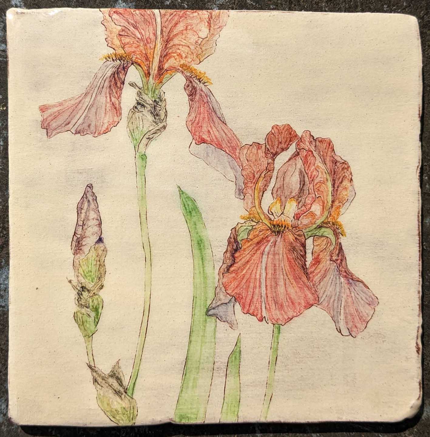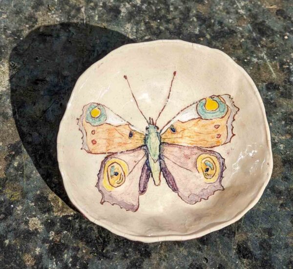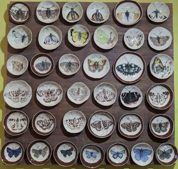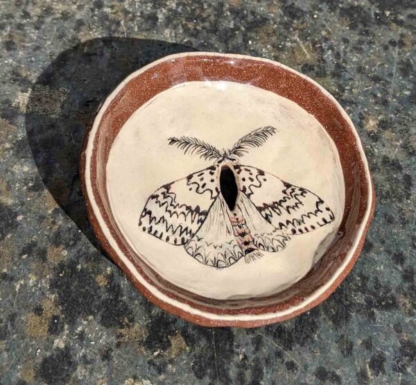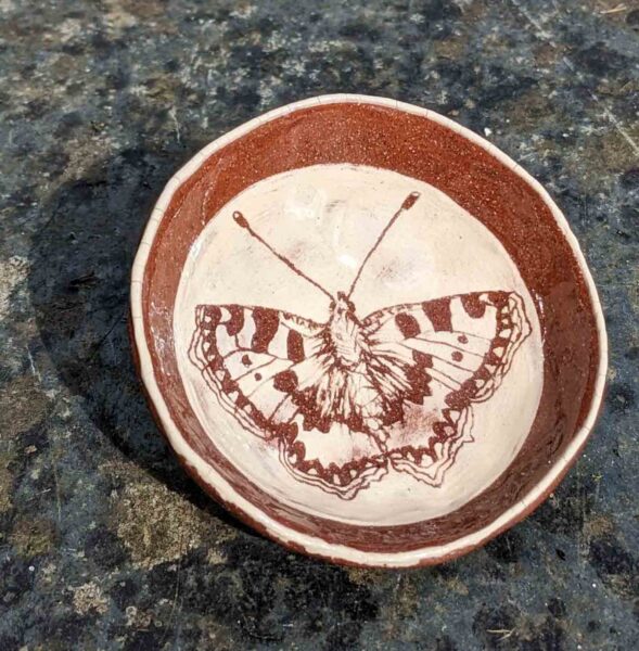 Sgraffito, slip and undergalze decorated elecrtic-fired earthenware bowls, soap dishes, tiles and splashbacks (commissions accepted).