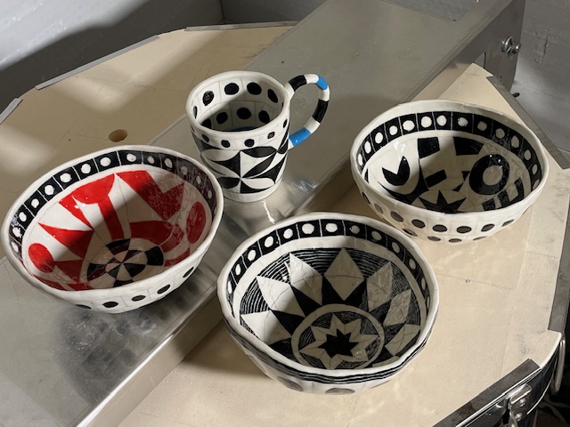 I’m currently working in stoneware, focusing on functional pieces like mugs, bowls, candleholders and vases, alongside some more sculptural work.