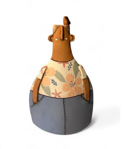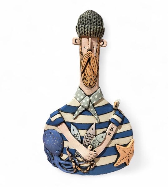 I am Jeannine and I live and work in mid Devon. Following a career in illustration and a few terms of an evening course at our local college, I have fallen in love with pottery. I especially love hand building and, not surprisingly, decorating with underglazes, oxides and slips. I have a wheel and am trying to learn to throw competently but it’s a slow process. I love quirky, bright, decorated pieces that bring a smile to people’s faces and continue to experiment with figures and colour techniques.