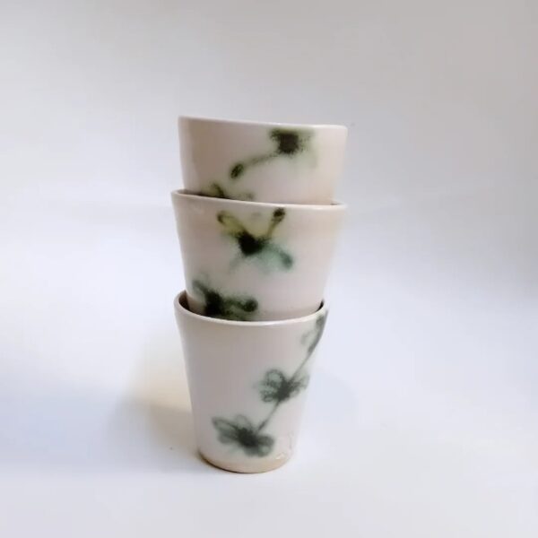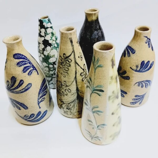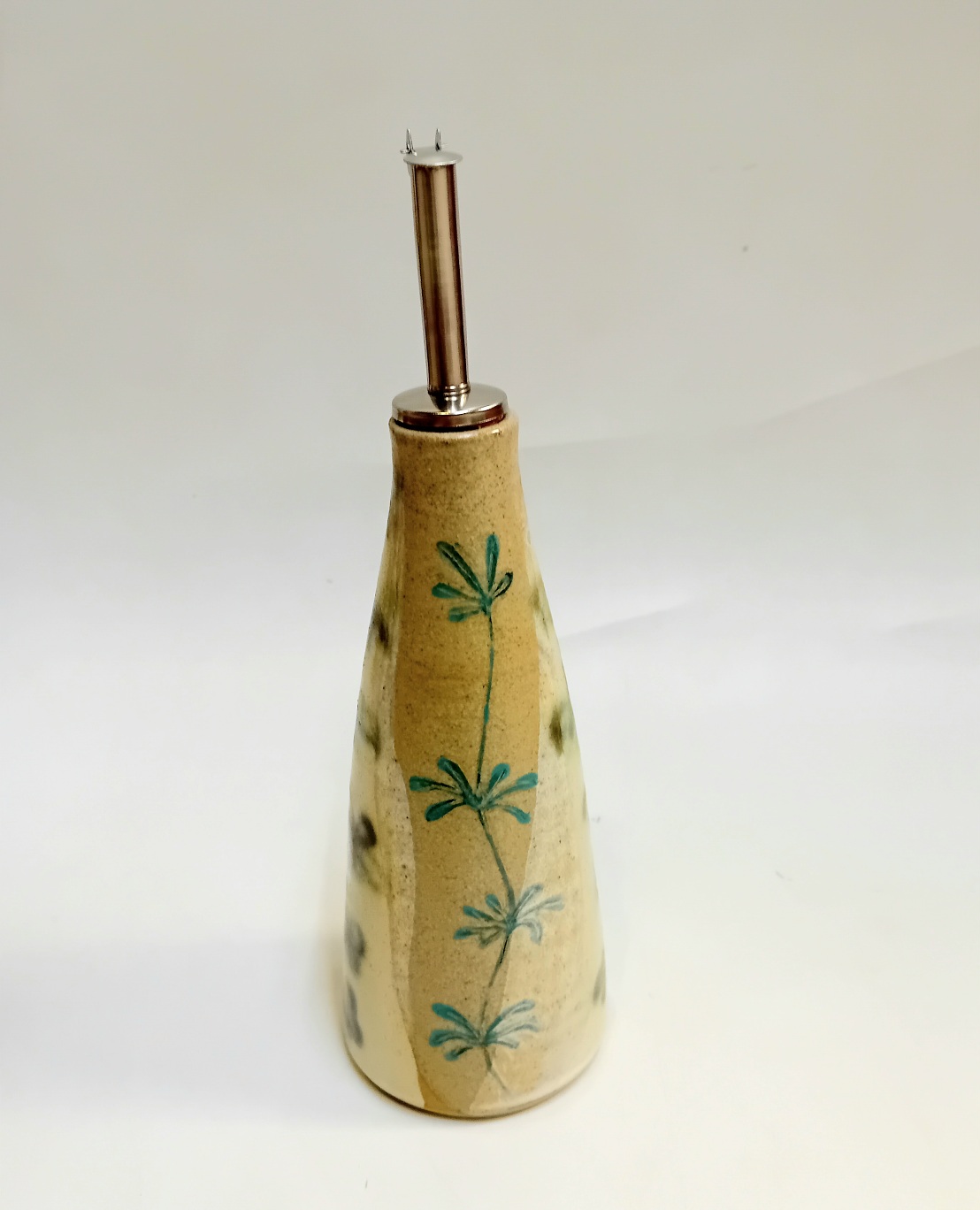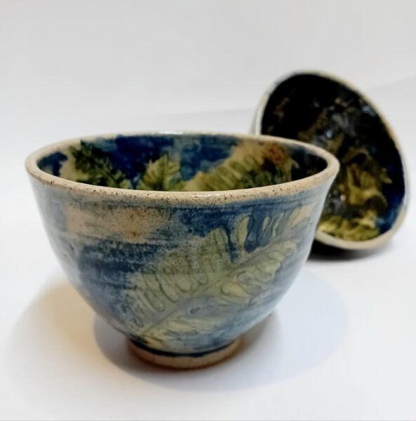 I make mostly thrown tableware in stoneware clay, inspired by nature and the seasons I create patterns. I like using underglazes and slips and scraffito to suggest plants, leaves, lichen, shadows and other natural forms.