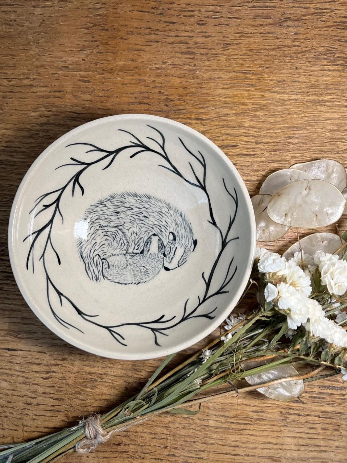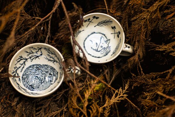 As a potter I am drawn to the creation of simple, elegant forms in neutral tones. Working exclusively in stoneware and in love with throwing, the inspiration for my hand-painted designs is found in my love of our native flora and fauna along with the ancient myths, legends and folklore of Europe.