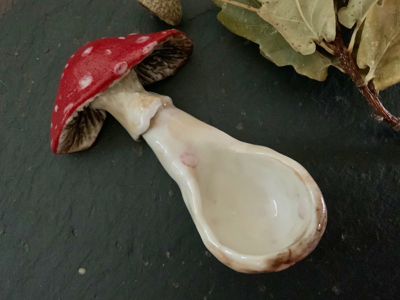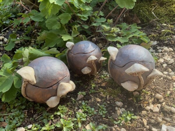 My practice encompasses both wheel-thrown and hand-built stoneware and porcelain ceramics — functional vessels and sculptural objects. With motifs of hares, mushrooms, oak leaves and acorns, my work draws on the living rhythms of nature and undercurrents of folklore and myth.