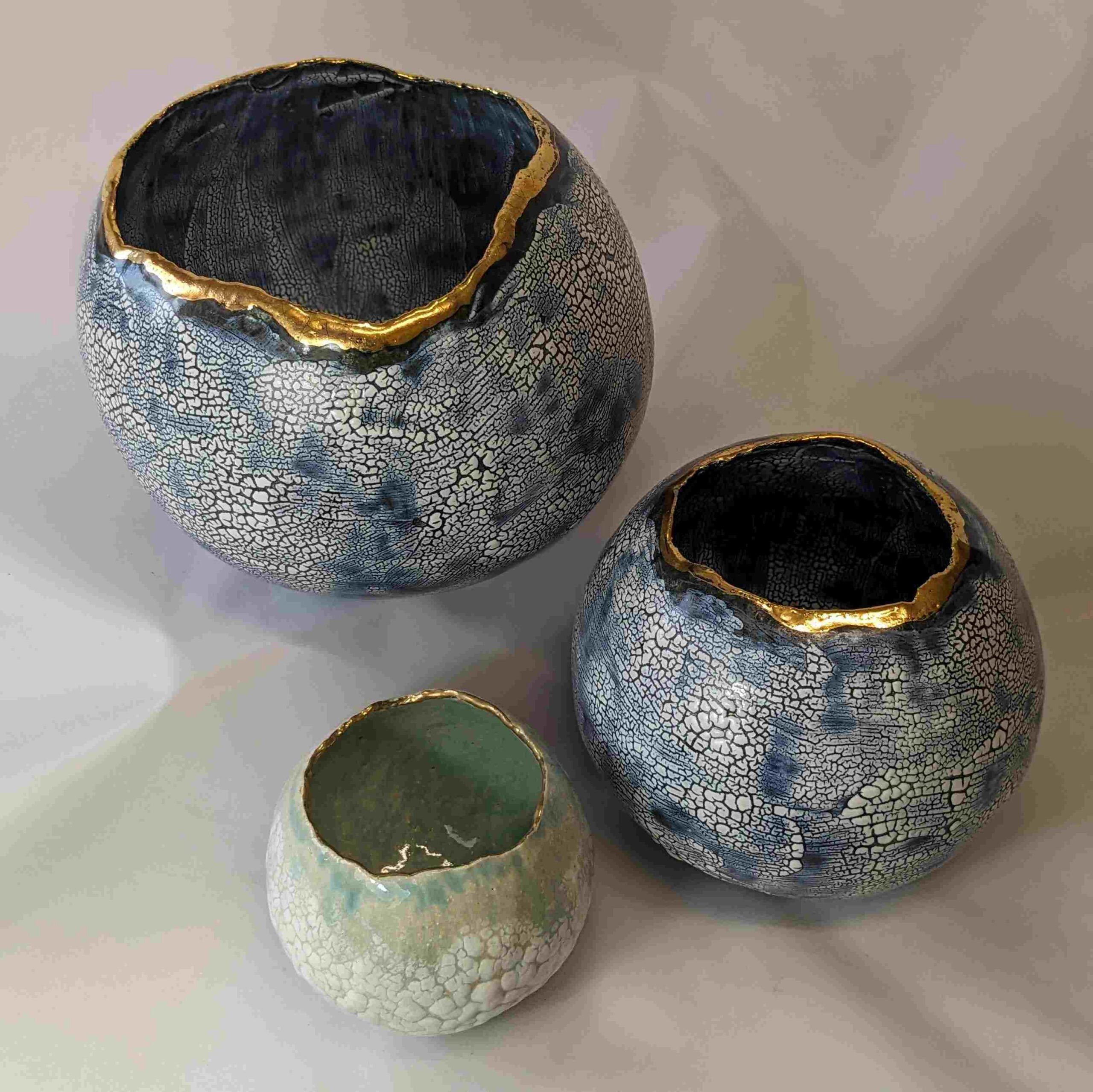 Through Plymouth College of Art and Design I had the opportunity to study ceramics and glass and fell in love with the pyrotechnics of Raku. I continued my professional development expressing the love of hand building pots and post firing in an outdoor environment using my hand built kilns. I develop my own unique style of creating sculptural ceramics with rivers of Raku glaze.I have taken part and exhibited in the international ceramic festivals at Hatfield, Farnham and Oxford, also having been made an elected member of the British Craft Potters Association in 2000, The Devon Guild of Craftsmen (now MAKE Southwest) and had the honour of exhibiting my work at the Victoria and Albert museum.My Inspiration for Creating my Work